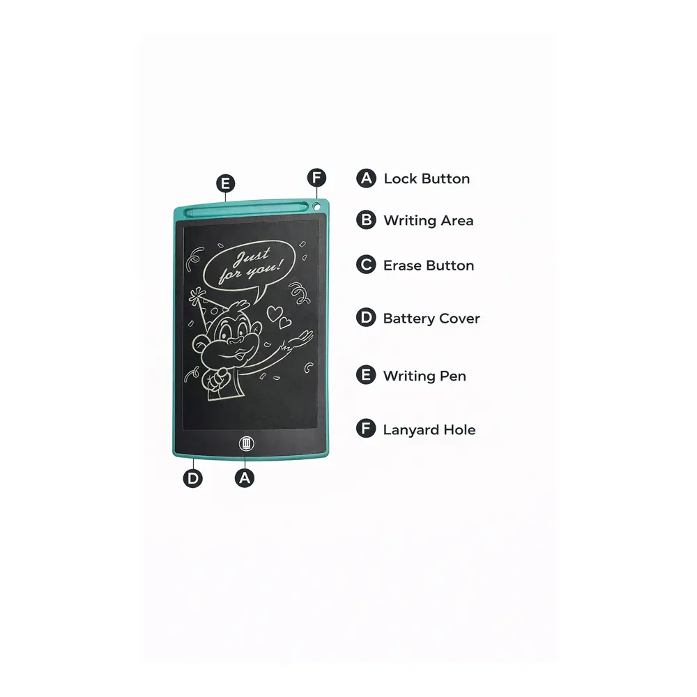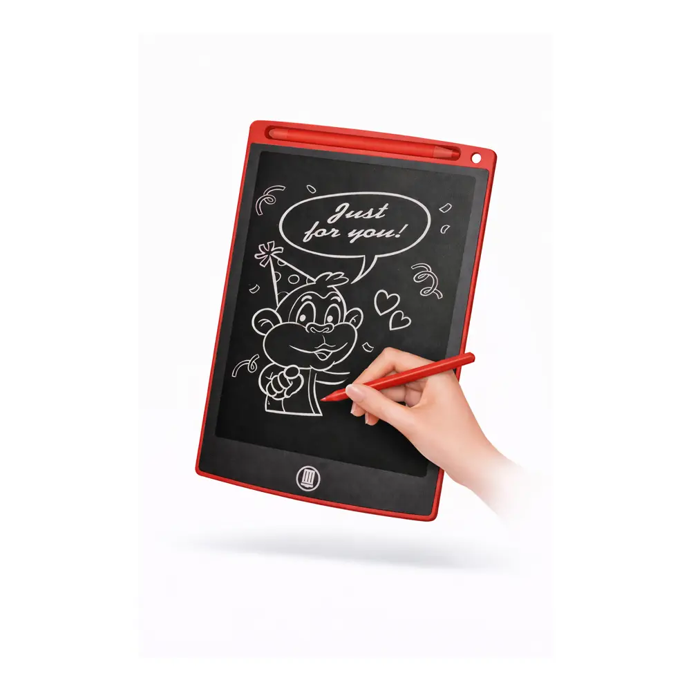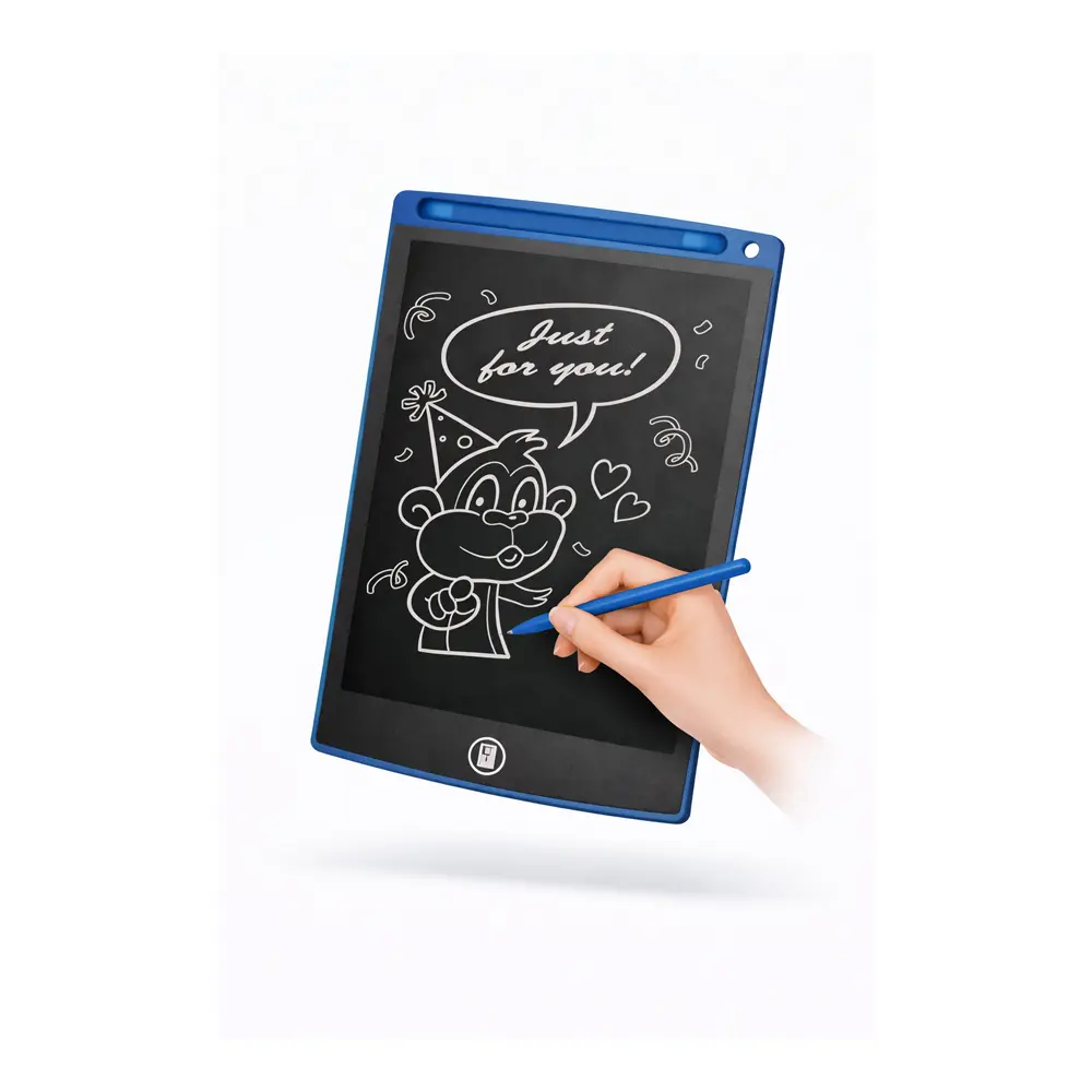 Dette 12 tommer LCD skrivebrettet er en praktisk digital tegnetavle som lar barn tegne, skrive og lage små notater på en enkel og morsom måte. Skjermen reagerer på den medfølgende pennen og viser tydelige streker som enkelt kan slettes med ett knappetrykk.