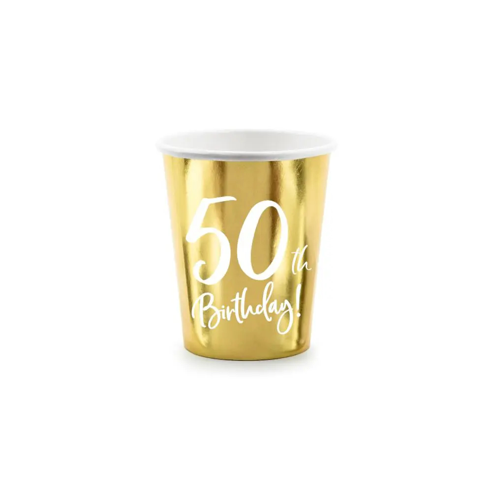 Den store 50-årsdagen fortjener en skikkelig feiring! Disse elegante gull pappkrusene med teksten “50th Birthday” setter prikken over i-en på bursdagsbordet.