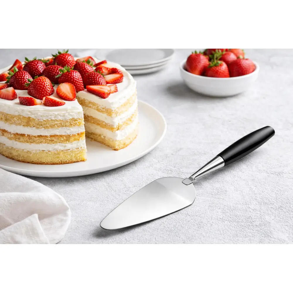 Stilren og elegant kakespade fra Aanonsen i solid og slitesterk kvalitet. Kakespaden er laget i rustfritt stål og har et praktisk non-stick belegg som gjør serveringen enkel og skånsom – perfekt til både bløtkaker, ostekaker, paier og andre desserter.