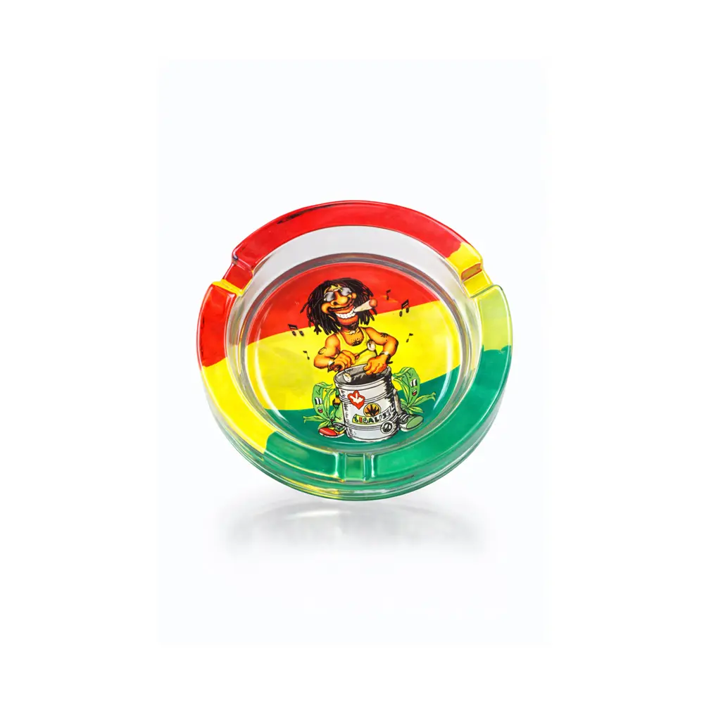 Gi uteplassen eller røykesonen et energisk preg med dette askebegeret i glass med 420 Reggae Beat-motiv. Designet viser en leken reggae-inspirert cartoon-karakter i klassiske rød, gul og grønn farger – et uttrykk som virkelig skiller seg ut.