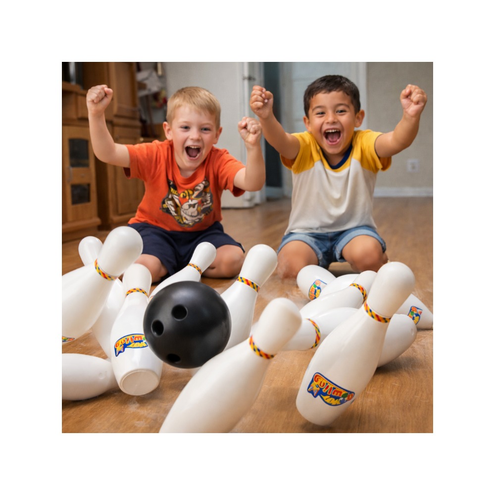 La barna oppleve spenningen ved bowling hjemme med dette morsomme og enkle bowling-settet for barn. Settet inneholder 10 kjegler og 2 bowlingballer, slik at flere barn kan spille sammen og konkurrere om hvem som klarer å slå ned flest kjegler.