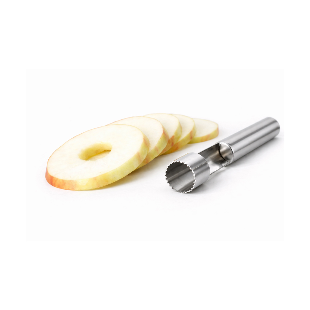 Praktisk og solid eplekjerner laget av slitesterkt rustfritt stål. Perfekt for rask og enkel fjerning av kjernehus i epler og pærer – ideell til bakte epler, eplekake, fruktsalat eller sunn snacks.