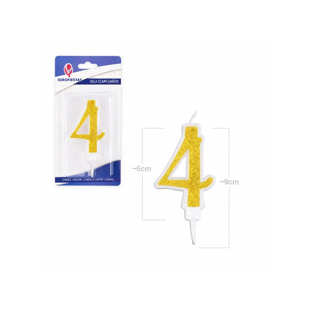 Gi bursdagskaken et festlig og elegant preg med dette gullglitrende kakelyset formet som tallet 4. Den skinnende glitteroverflaten gir kaken et dekorativt og stilfullt uttrykk som passer perfekt til bursdager, jubileer og andre feiringer.
