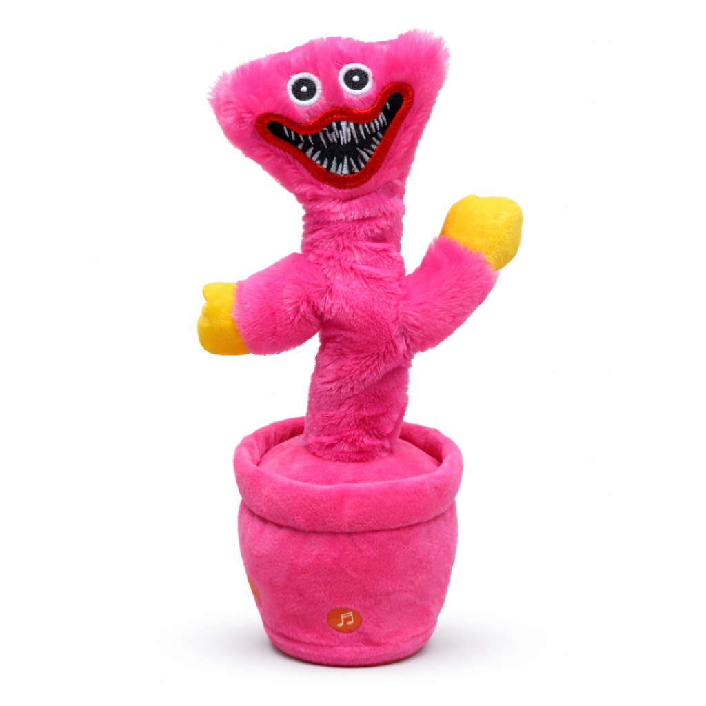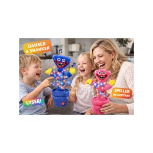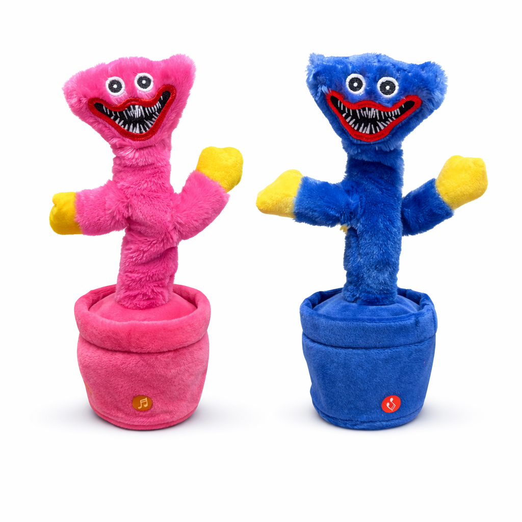 Denne morsomme og interaktive plysjfiguren er inspirert av karakterene Huggy Wuggy og Kissy Missy fra det populære spillet Poppy Playtime. Leken kombinerer musikk, lys og stemmefunksjoner for å skape en underholdende opplevelse for barn.