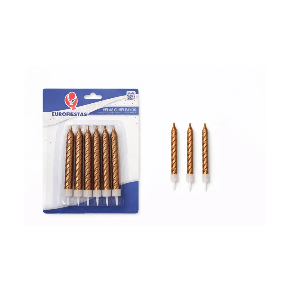 Disse stilrene kakelysene i bronse/gull farge gir kaken et elegant og moderne uttrykk. Lysene har en dekorativ spiralform og en metallisk finish som passer perfekt til bursdag, jubileum, nyttår, bryllup eller andre festlige anledninger.