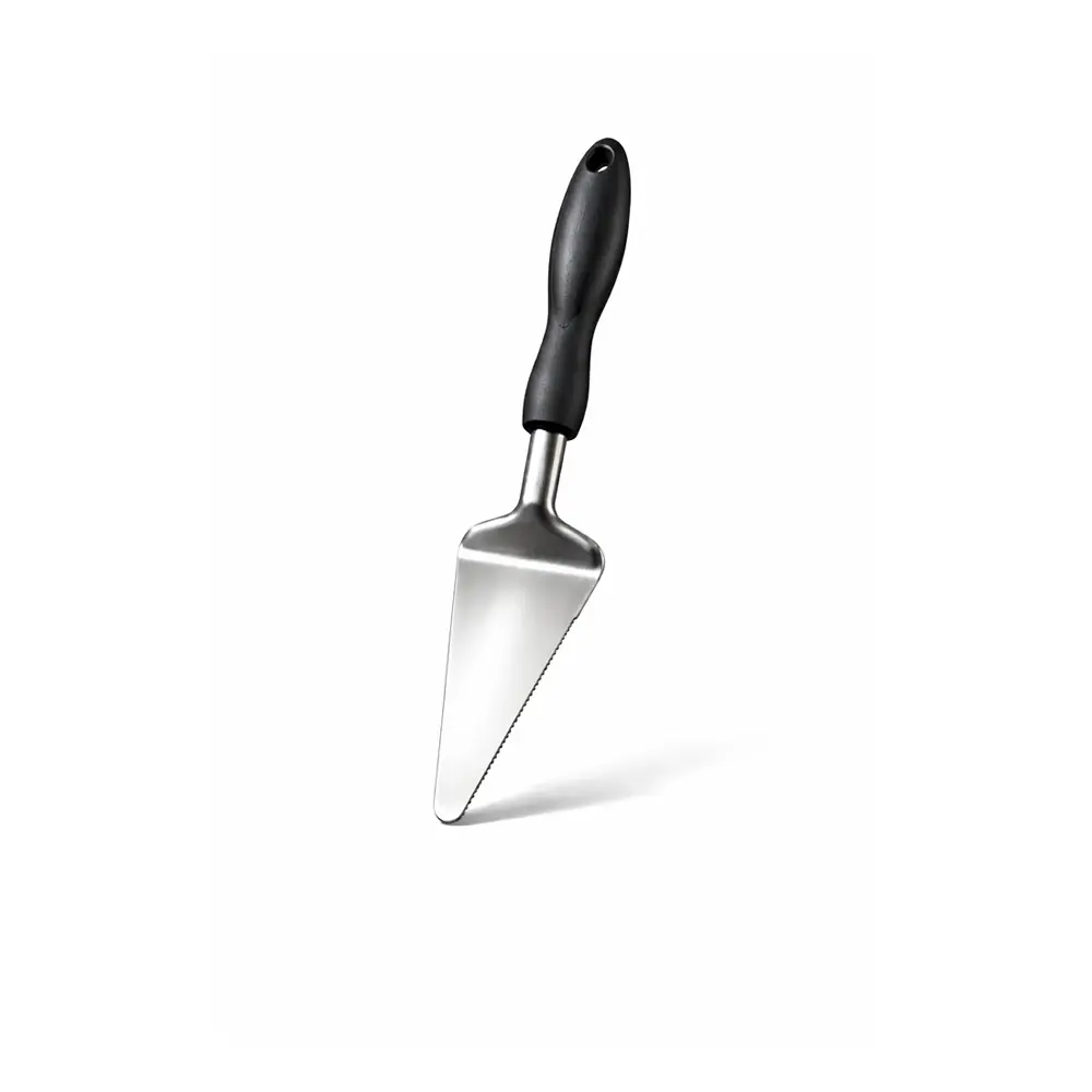 Praktisk og solid kakespade med klassisk trekantet form og tagget skjærekant som gjør det enkelt å både skjære og servere kaker i ett og samme redskap. Den ene siden har en fin serratering (tagger) som skjærer rent gjennom bløtkaker, ostekaker og paier.