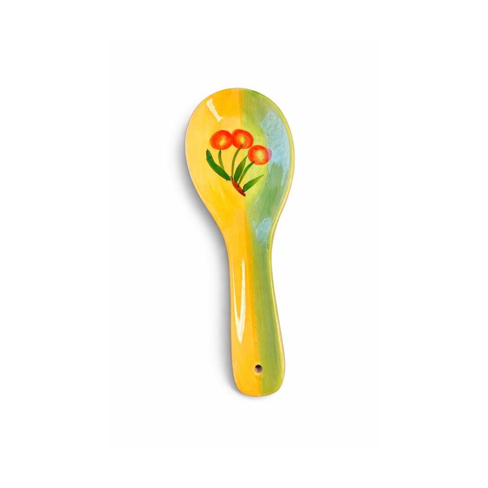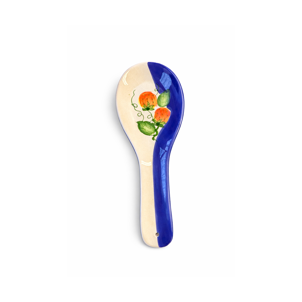 Skjeholderen er håndmalt og har et tidløst uttrykk som gjør den like godt egnet som et dekorativt element når den ikke er i bruk. Et praktisk kjøkkentilbehør med et personlig preg.
