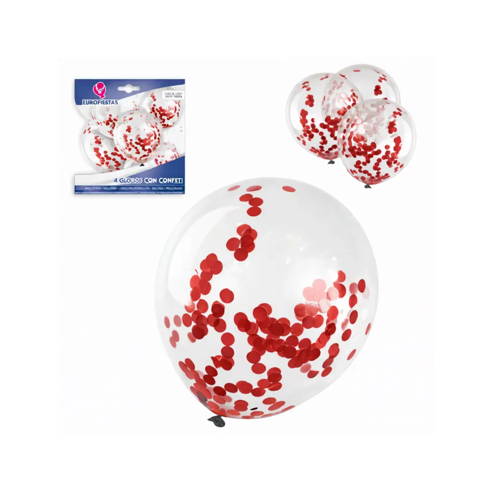Skap en dekorativ og festlig stemning med disse elegante konfettiballongene med rød detaljer. Pakken inneholder 4 transparente lateksballonger fylt med rød konfetti som gir et eksklusivt og lekent uttrykk.