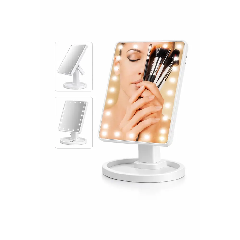 Dette LED sminkespeilet med 16 innebygde LED-lys gir jevn og naturlig belysning for perfekt sminke og hudpleie. Touch-knappen gjør det enkelt å slå lyset av og på, samt justere lysstyrken etter behov.