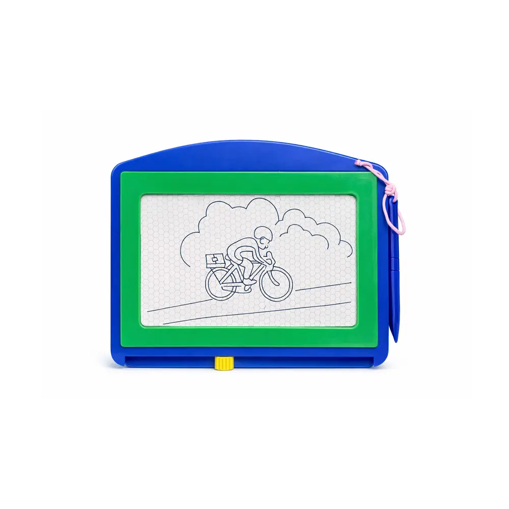 Når barnet ønsker å starte på nytt, skyves viskeren nederst på brettet over skjermen slik at tegningen forsvinner og tavlen er klar til bruk igjen. Dette gjør tegnebrettet til et praktisk alternativ til papir, tegneblokker og tusjer.