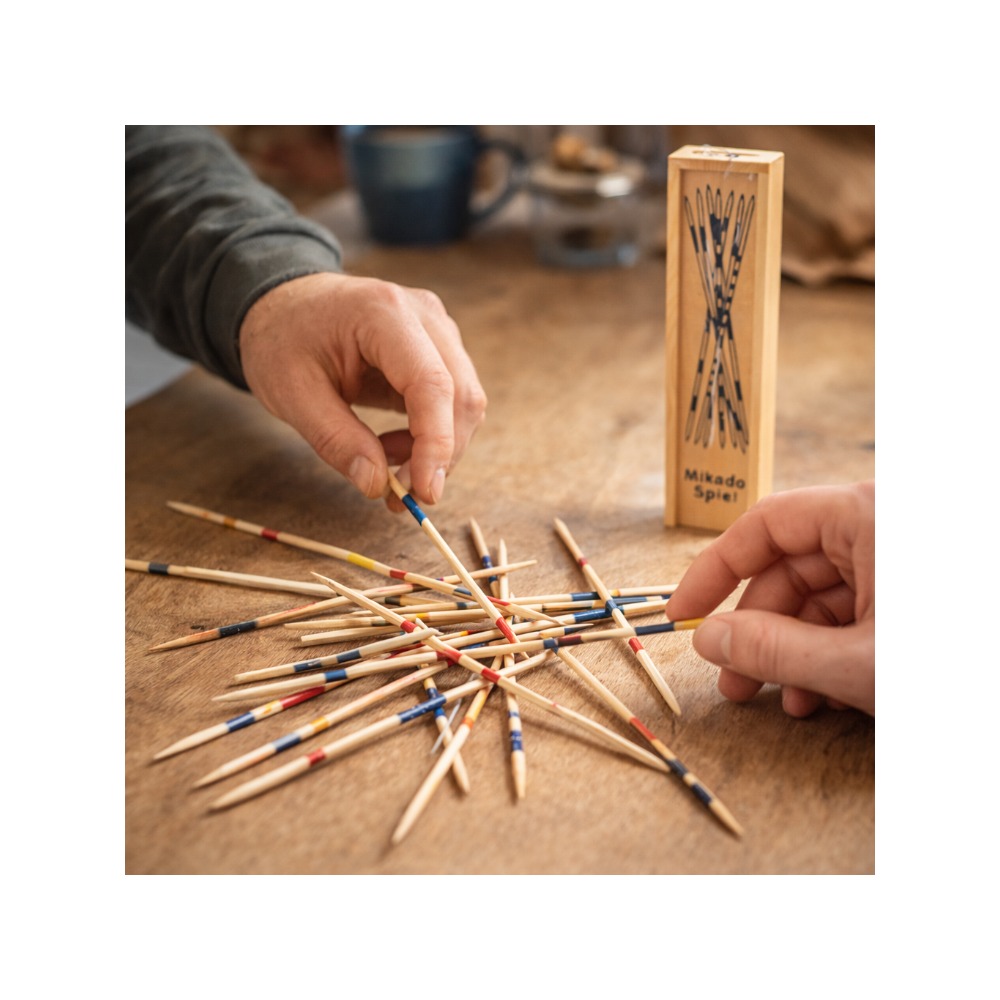 Mikado passer like godt for barn som voksne, og er ideelt når du vil ha et spill som er raskt å sette i gang og lett å ta frem. Den praktiske treboksen gjør det enkelt å oppbevare pinnene og ta spillet med seg.