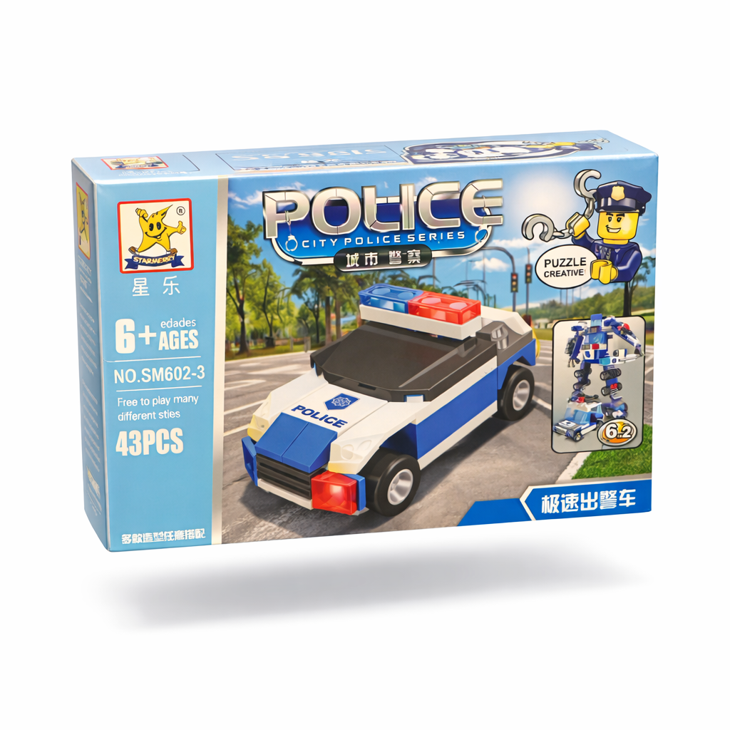 La barna bygge og leke med sin helt egen politibil! Dette byggesettet inneholder 43 deler som settes sammen til en kompakt og tøff politibil. Å bygge selv gir både mestringsfølelse og kreativ trening – og når bilen er ferdig, er den klar for actionfylte redningsoppdrag og rollelek.