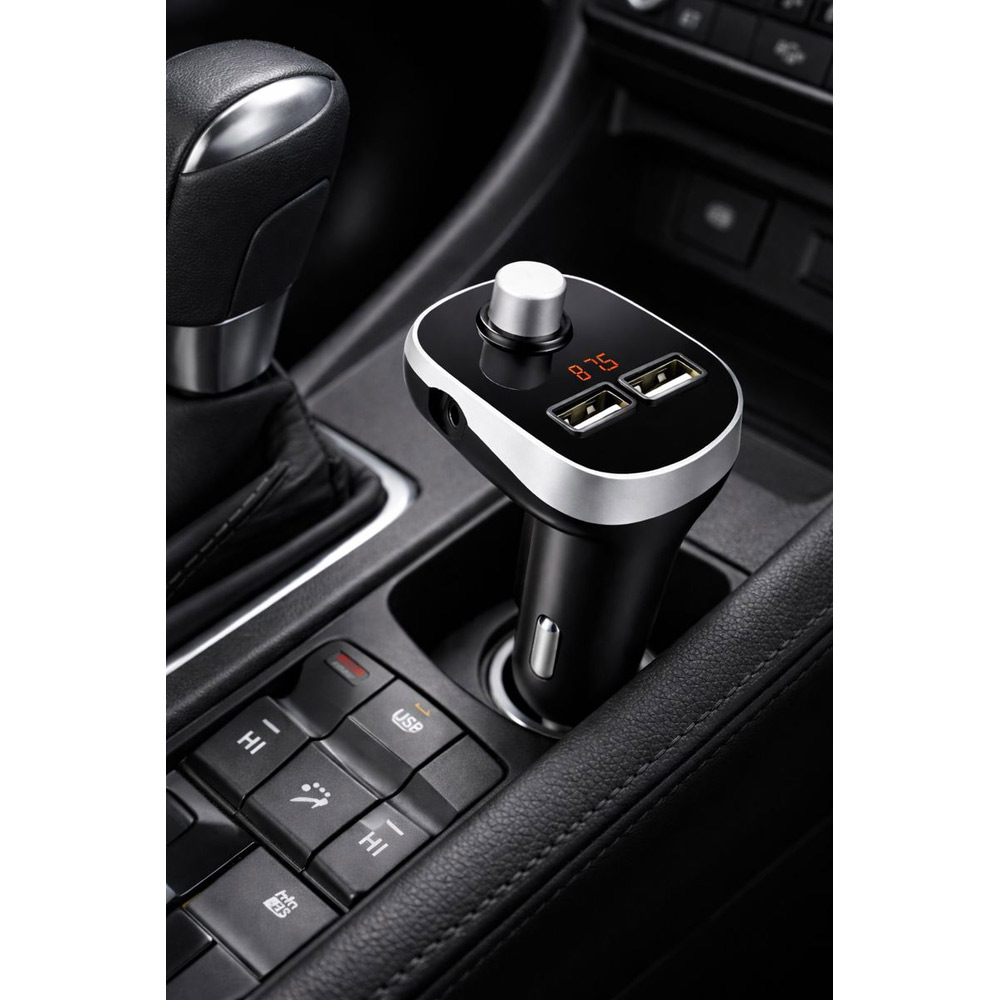 Denne multifunksjonelle Bluetooth FM-senderen gjør det enkelt å spille musikk og ta telefonsamtaler trådløst i bilen. Enheten kobles til bilens sigarettenner og sender lyd via FM-frekvens direkte til bilradioen.