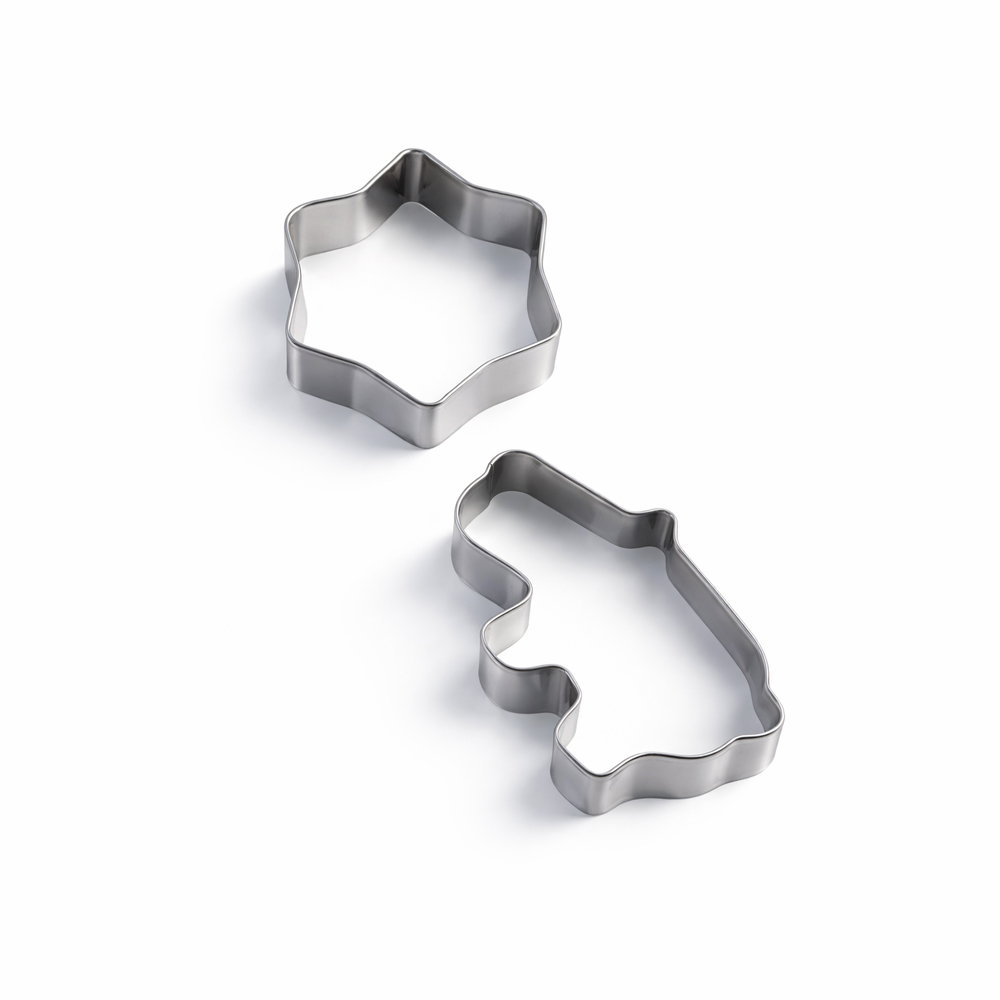 Praktisk sett med 2 bakeformer i rustfritt stål, perfekt til pepperkaker, kjeks, marsipan og fondant. Formene kommer i ulike figurer (se bilder for variant) og gir et dekorativt og kreativt preg på bakingen.