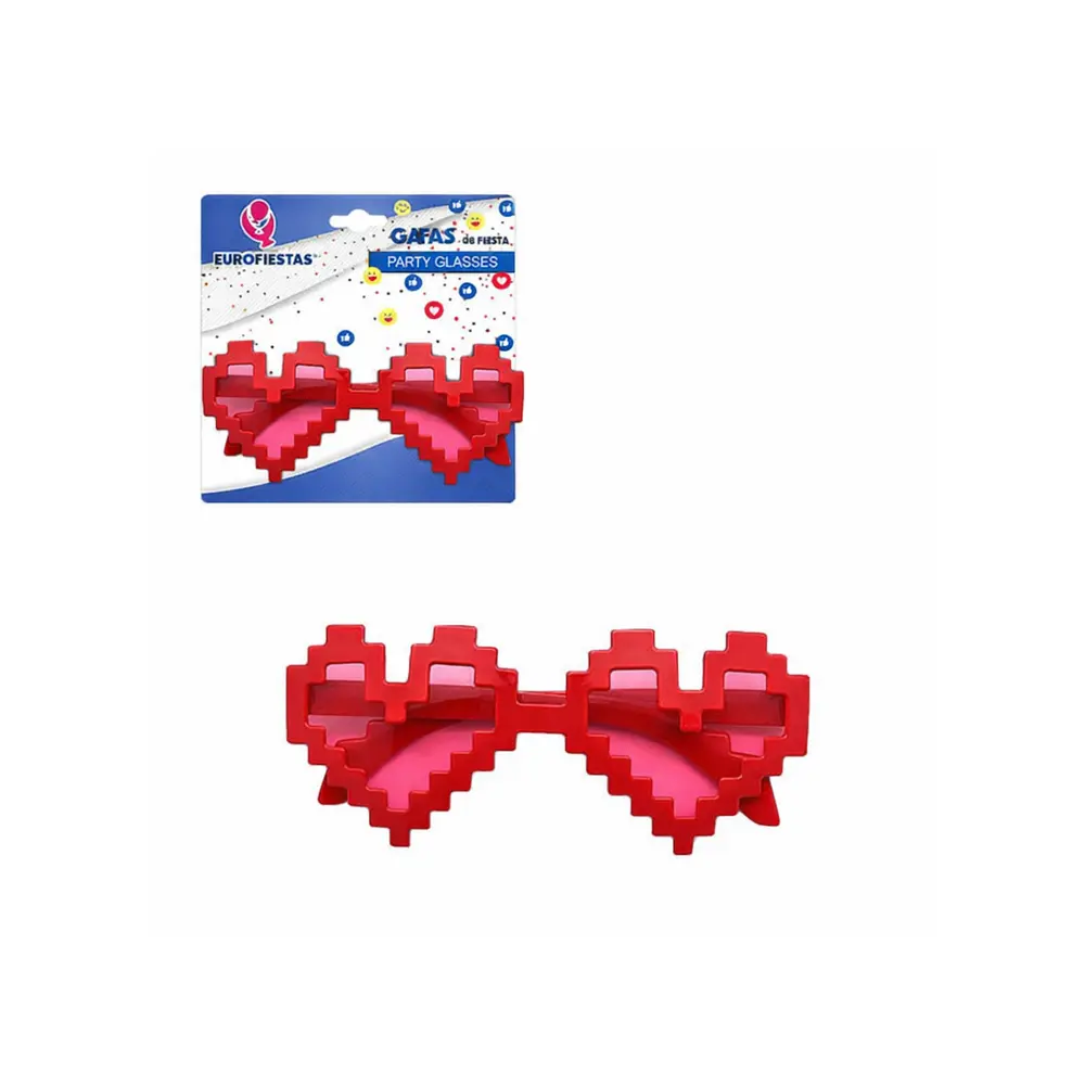 Gi festen et ekstra morsomt preg med disse pikselerte hjertebrillene i rødt design. Brillene har en retro-inspirert pikselstil som gir et lekent og unikt uttrykk, perfekt til festlige anledninger.