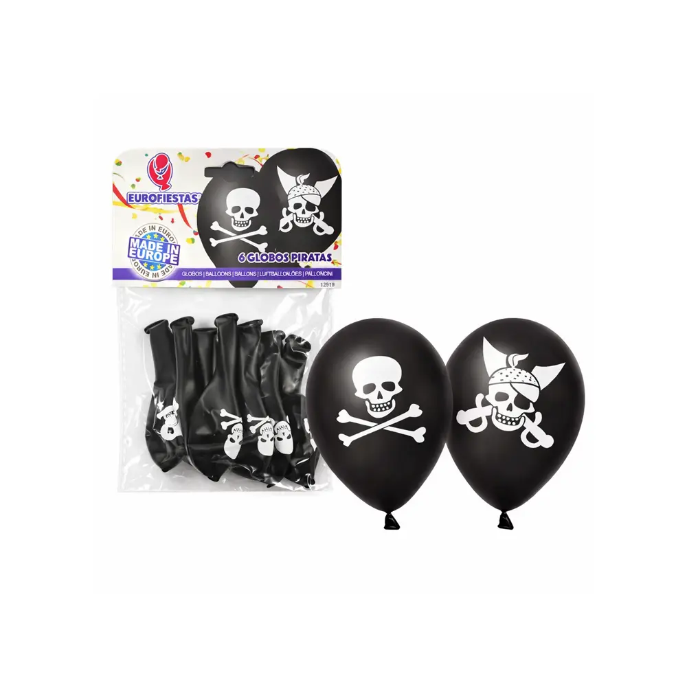 Gjør festen ekstra spennende med disse stilige piratballongene med hodeskallemotiv. Ballongene har et klassisk piratdesign med hvite hodeskaller og korslagte bein på en svart bakgrunn, noe som gir en ekte piratstemning til festen.