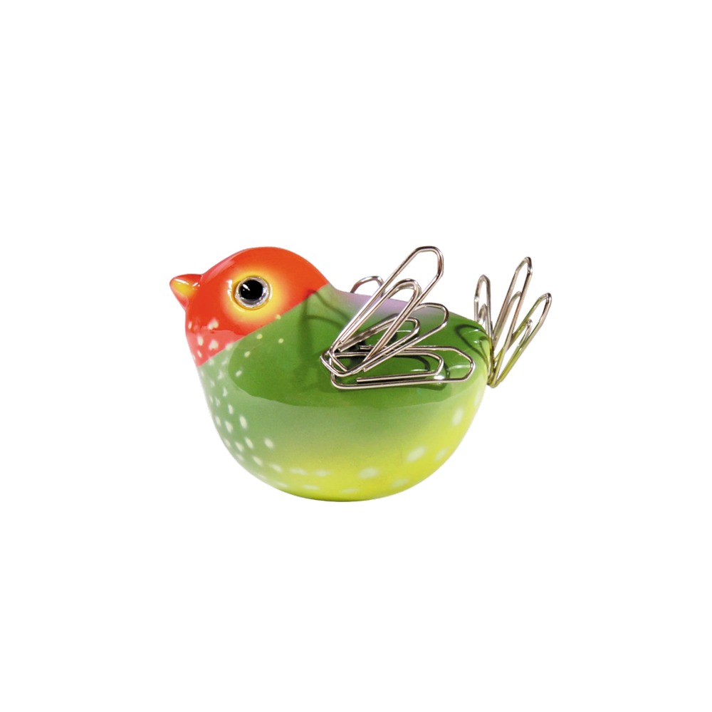 Møt Piu Piu, din nye fargerike og smarte skrivebordskompanjong! Denne lille fuglen er ikke bare dekorativ – den har også en skjult superkraft: en magnetisk kropp som gjør den perfekt for å holde styr på binders, sikkerhetsnåler og andre små metallgjenstander. Når du berører den, kvitrer den med et lite pip – en morsom detalj som bringer et snev av liv og glede til arbeidsdagen din.