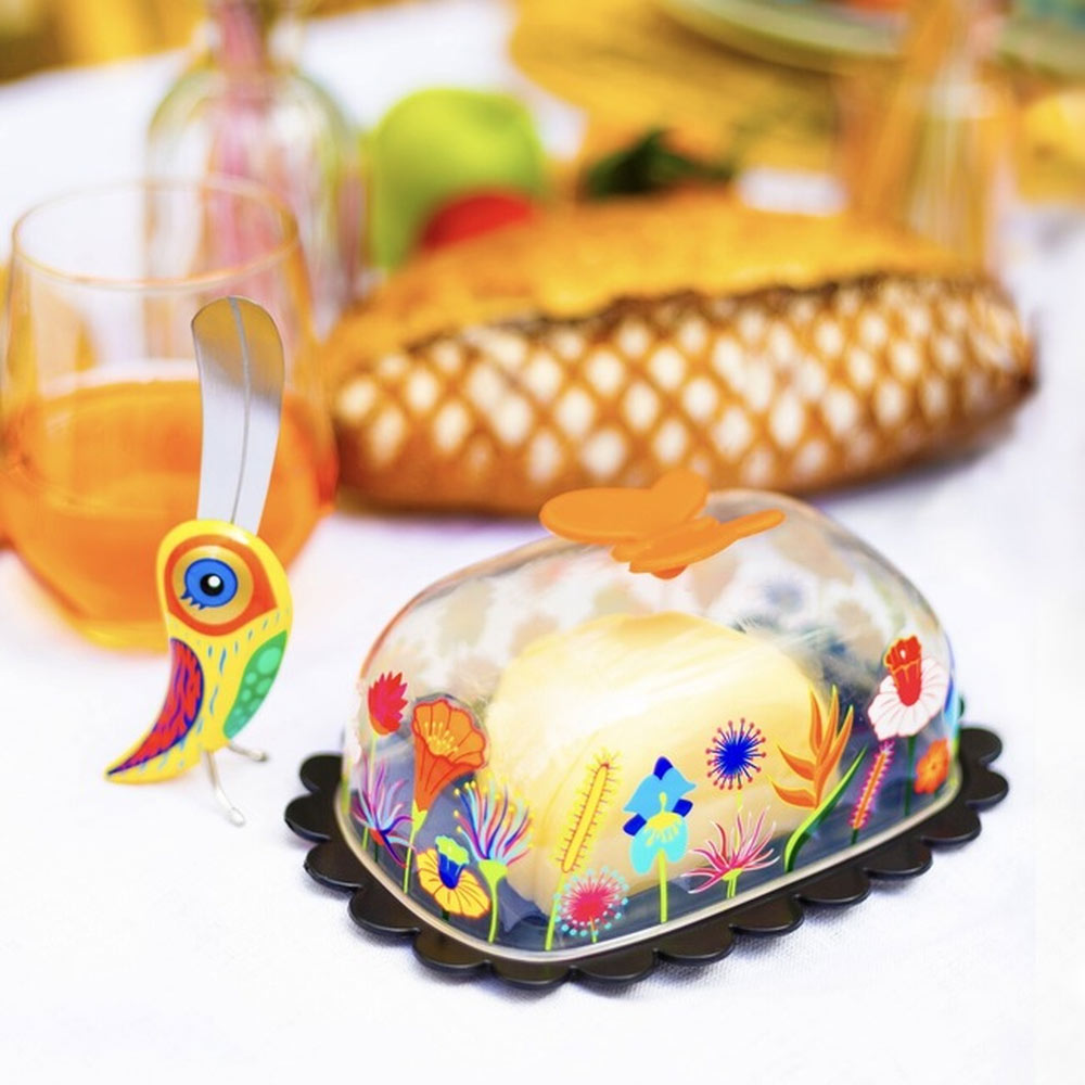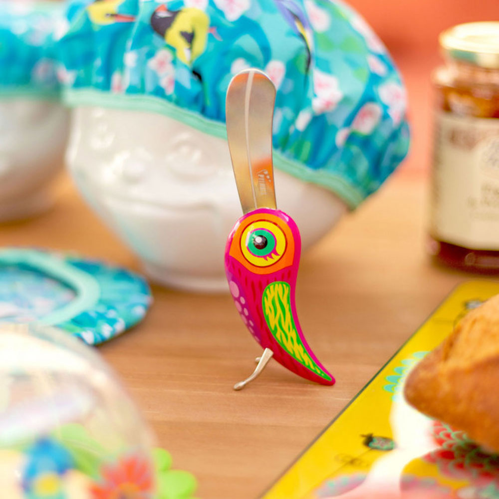 Fanfaron er en morsom og praktisk smørspreder som setter litt personlighet på frokostbordet. Med sitt unike design står den oppreist på egne ben, slik at bordet holder seg rent mellom bruk.