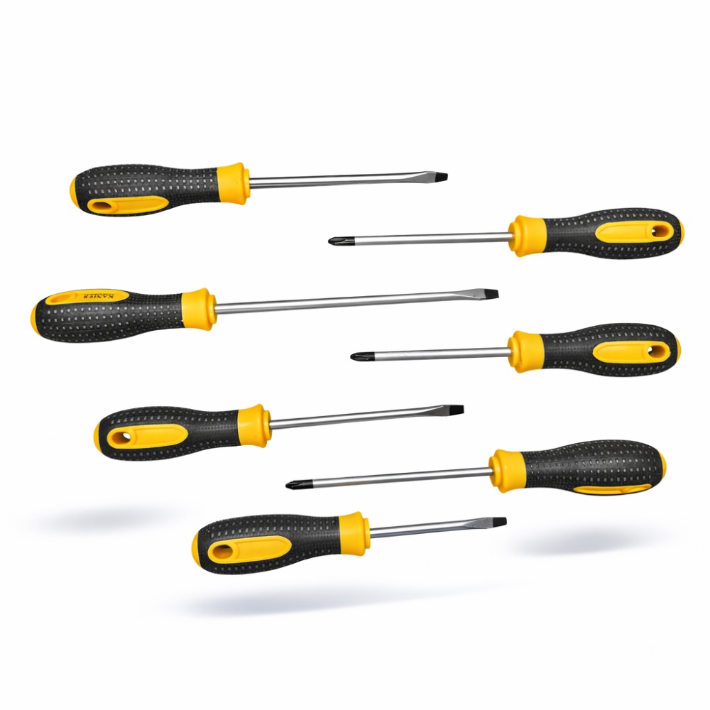 Solid og praktisk skrutrekkersettet fra Kanier av 7 deler med ergonomiske håndtak for godt grep. Settet inneholder både flate og stjerne (Phillips) skrutrekkere i ulike størrelser – perfekt til hjem, verksted og hobby.