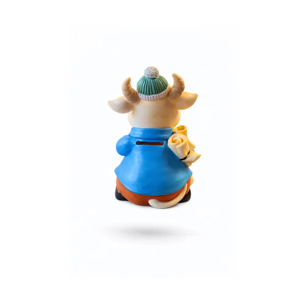 Gjør sparing morsomt med denne søte sparebøssen i form av en ku-figur. Designet kommer i tre forskjellige varianter med ulike antrekk og uttrykk – perfekt for barn som vil ha sin egen unike sparebøsse.
