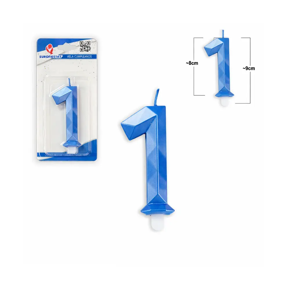 Gi kaken et stilrent og moderne preg med dette blå tall-lyset nummer 1 i dekorativ polygon-design. Den kantede formen gir et ekstra elegant uttrykk som passer både til barnebursdager, ungdomsfeiringer og jubileer.