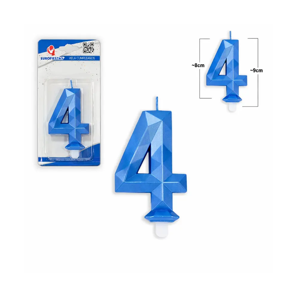 Gi kaken et moderne og dekorativt preg med dette blå tall-lyset nummer 4 i stilrent polygon-design. Den kantede fasongen gir et trendy uttrykk som passer både til barnebursdager og større feiringer.