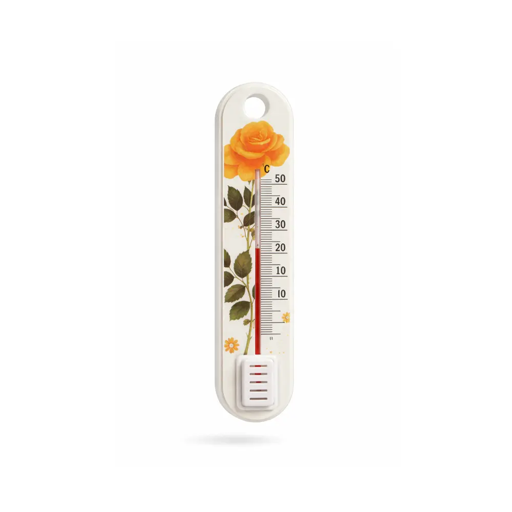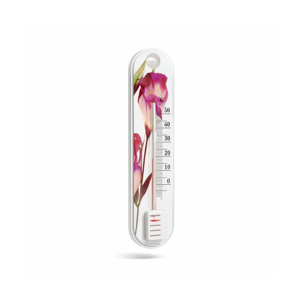Termometeret har tydelig temperaturskala og et klassisk design med dekorativt motiv. Den avlange formen gjør det lett å lese temperaturen på avstand, samtidig som det fungerer som et lite dekor-element.